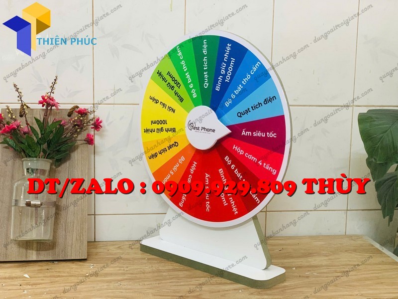 vòng quay để bàn trúng thưởng thân gỗ giúp: