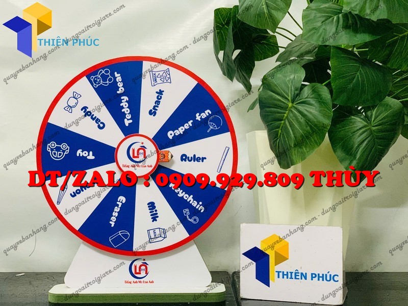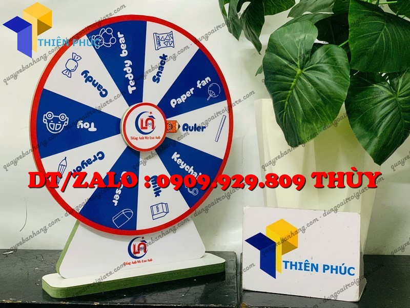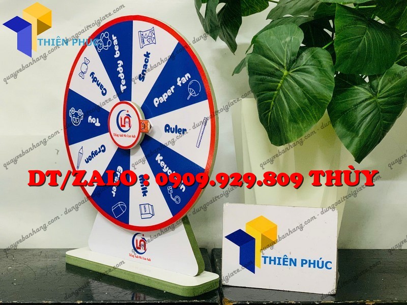 Ngoài ra, logo và màu sắc thương hiệu có thể in trực tiếp lên mặt vòng quay để tăng nhận diện.