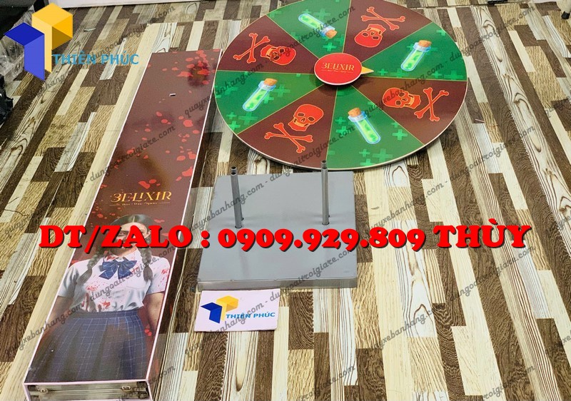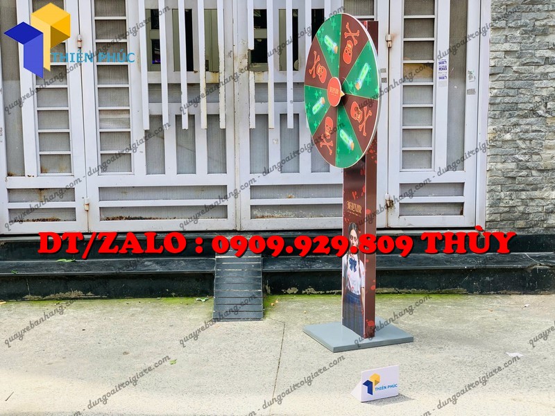 Vòng xoay may mắn thân trụ đế sắt chắc chắn, bền đẹp, dễ lắp ráp, giúp sự kiện thêm sôi động. Xưởng Thiên Phúc sản xuất – in logo, giao nhanh toàn quốc, giá rẻ.