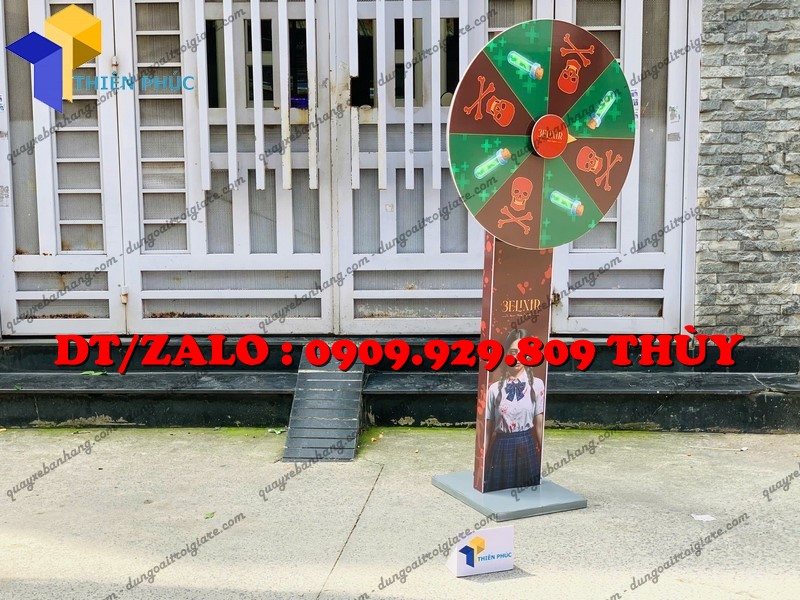 Liên hệ Xưởng Thiên Phúc để đặt làm vòng xoay may mắn thân trụ đế sắt – chắc chắn, đẹp mắt, dễ sử dụng và thu hút khách hàng cực tốt!