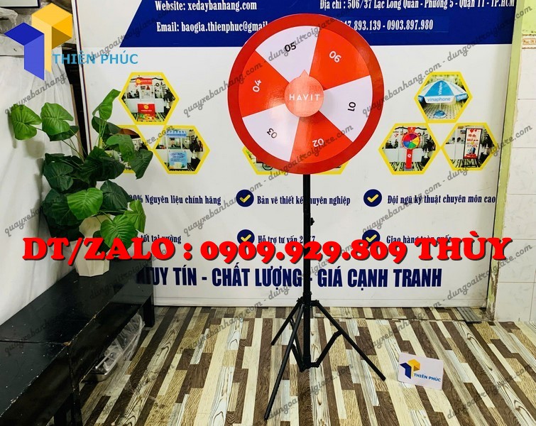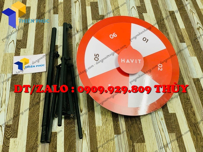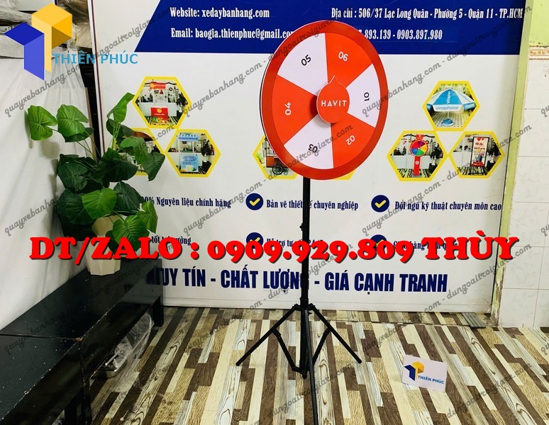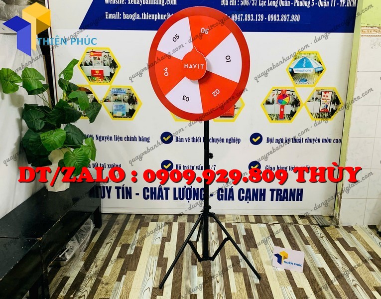 Vòng xoay số bốc thăm chân đứng xếp gọn – xoay mượt, đẹp, in logo theo yêu cầu. Giải pháp mini game marketing thu hút khách và tăng tương tác cực hiệu quả.