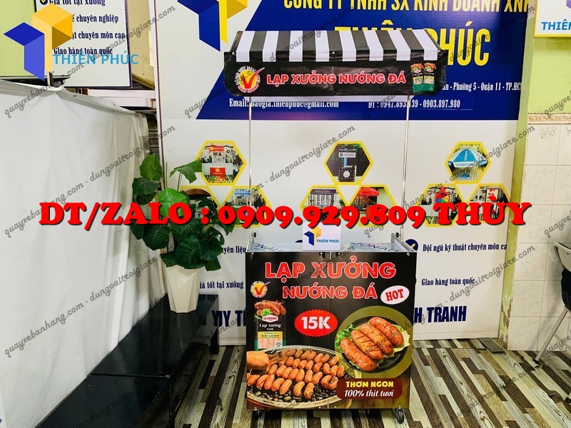 Tên Sản Phẩm: Xe bán ăn vặt vỉa hè lắp ráp bán lạp xưởng nướng đá