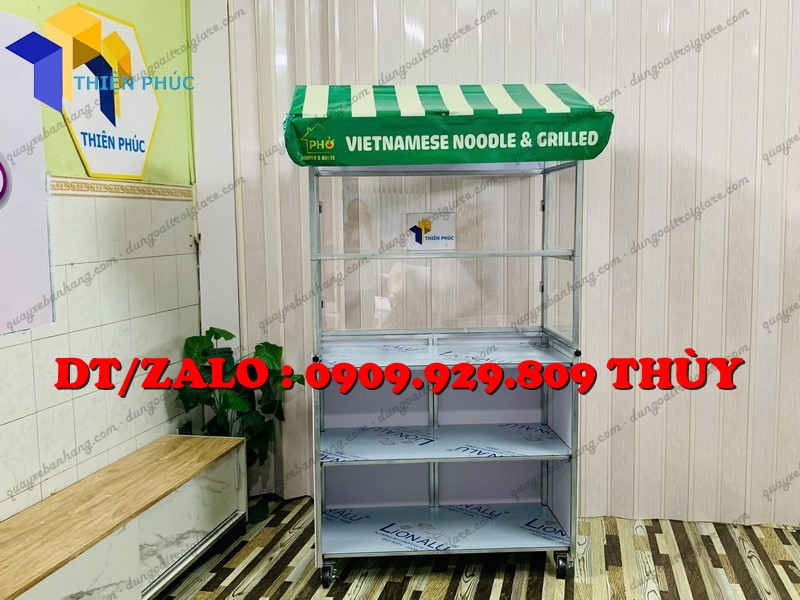 Tên Sản Phẩm: xe bán thức ăn gắn tủ kính mica gấp gọn,