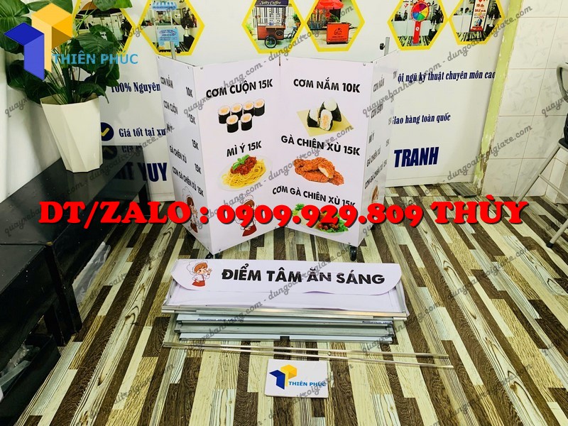Tên Sản Phẩm: xe bán thức ăn gấp gọn bán món : cơm cuộn, mì ý, cơm nắm, cơm gà chiên giòn