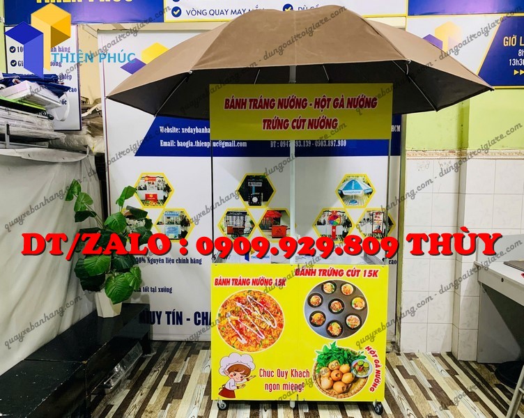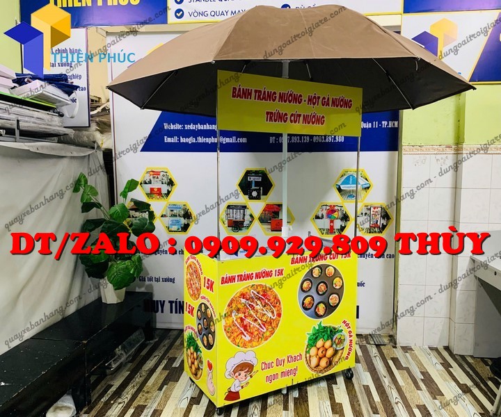 Xe bán thức ăn vặt kèm dù, gọn nhẹ, tiện lợi – kinh doanh bánh tráng nướng, hột gà nướng, trứng cút nướng tại vỉa hè, chợ, sự kiện.