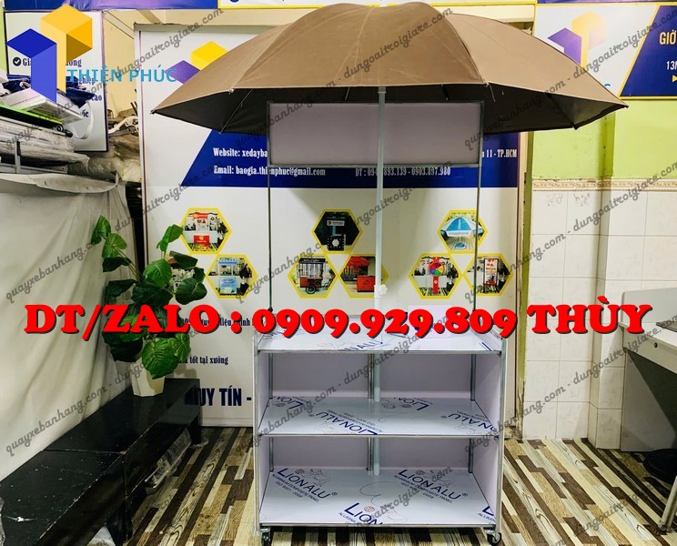 Xe bán thức ăn vặt kèm dù là công cụ kinh doanh di động, tiện lợi và linh hoạt. Với thiết kế gọn gàng, bề mặt chế biến rộng, kèm ô dù bảo vệ, sản phẩm giúp bán hàng nhanh chóng, thu hút khách và tối ưu chi phí kinh doanh.