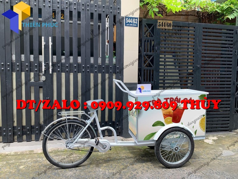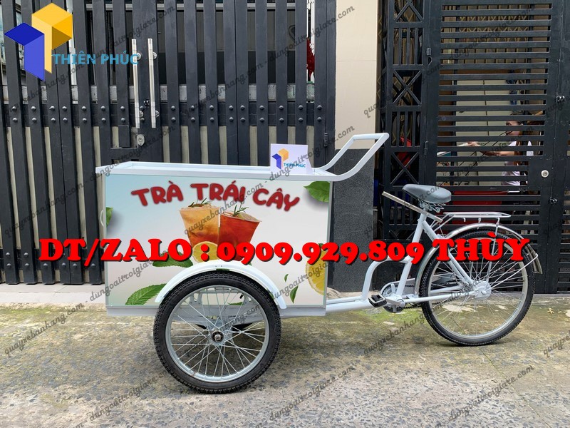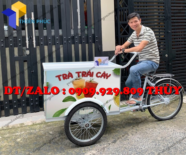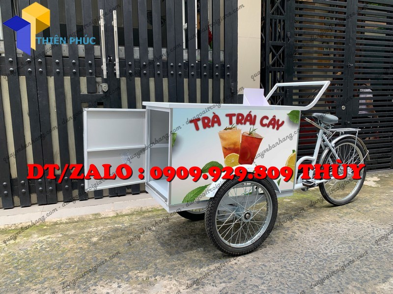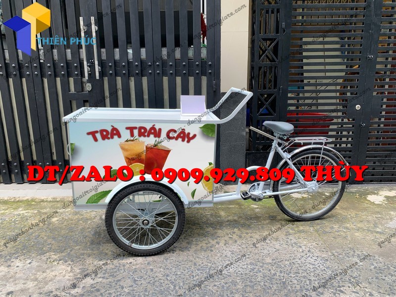 Xe đạp bán trà trái cây lưu động là dạng xe đạp được cải tiến thành quầy bán nước với: