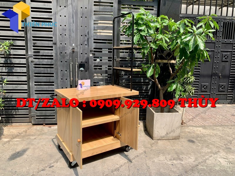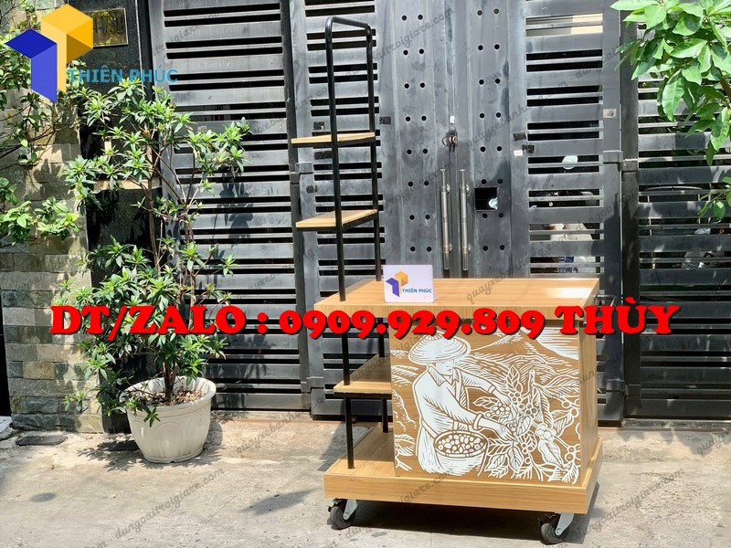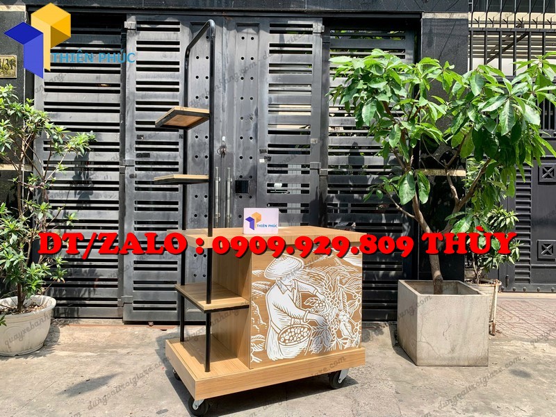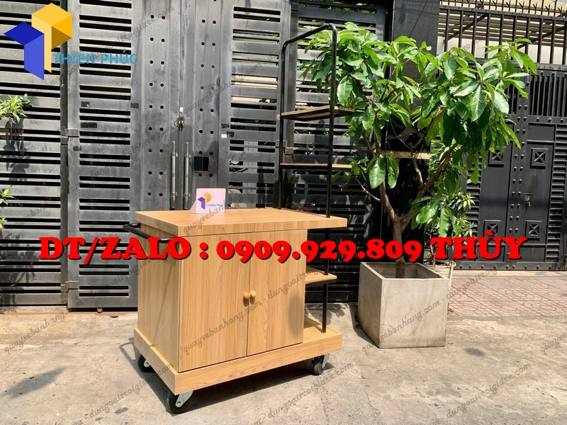Xe được thiết kế nhiều tầng hoặc nhiều ngăn chứa, giúp sắp xếp ly tách, nguyên liệu và dụng cụ pha chế một cách khoa học. Mặt bàn rộng giúp thao tác nhanh, gọn gàng và chuyên nghiệp hơn.