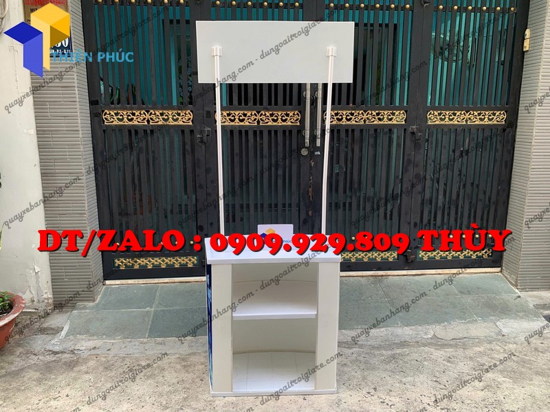 + Hai cây chống nối với logo và phần quầy bằng thép ống sơn trắng