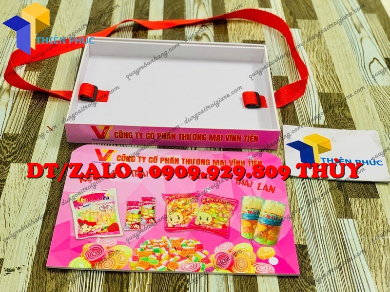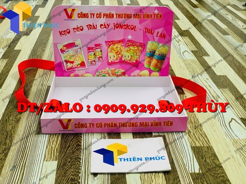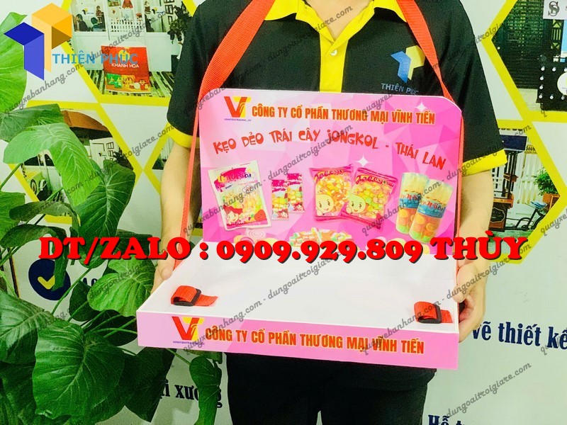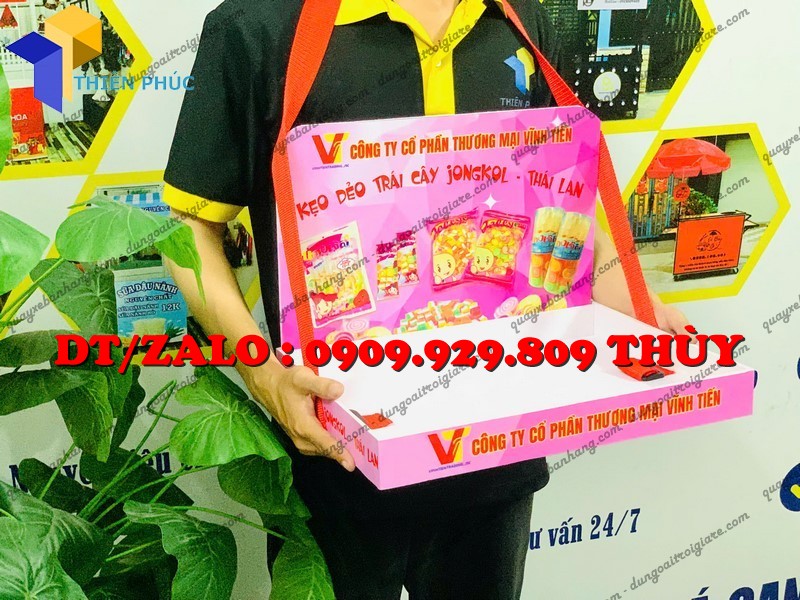 Xưởng sản xuất khay sampling quảng bá thương hiệu chuyên nghiệp, nhỏ gọn, tiện lợi và dễ đeo vai. Phù hợp phát mẫu thử, quảng bá sản phẩm, nâng cao nhận diện thương hiệu tại siêu thị, sự kiện và trung tâm thương mại.