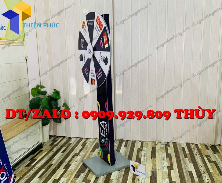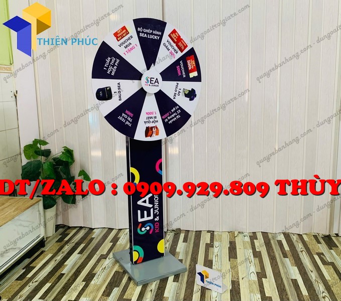 Và vòng quay Lucky Draw thân trụ đứng in logo là công cụ cực kỳ hiệu quả.