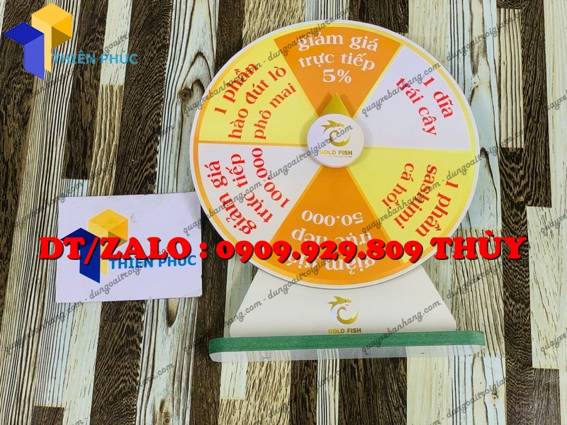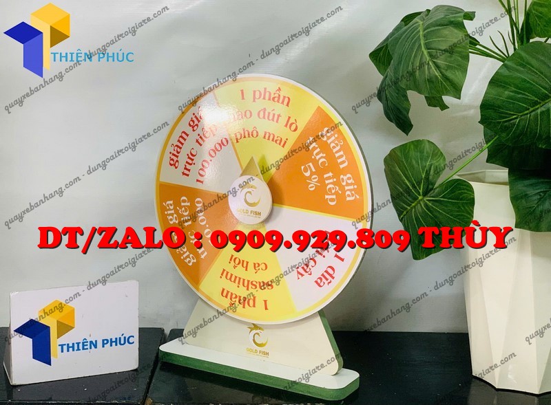 Tại THIÊN PHÚC, chúng tôi chuyên gia công – sản xuất – in ấn vòng quay gỗ chân trụ để bàn mini phục vụ cho sự kiện, mini game, quảng cáo thương hiệu, cửa hàng, văn phòng và livestream bán hàng.